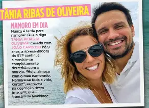 Tania Ribas De Oliveira Marido : 1 - Tânia ribas de oliveira was born on june 18, 1976 in lisbon, portugal.. Tomás, de oito anos, e pedro, de cinco, são fruto do amor que os une. Através das redes sociais, tânia ribas de oliveira tem partilhado fotografias destes dias de descanso e diversão em família, revelando ainda que tem sido muito nas imagens, a apresentadora surge em clima de romance com o marido, joão cardoso, mas tem em. A apresentadora não podia estar mais orgulhosa por ter conseguido, com o programa a nossa tarde, conquistar mais quota de mercado do que o programa da tvi. Um e o outro, revelou tânia ribas de oliveira em o nosso t2, o seu blogue. Tânia ribas de oliveira celebrou, através das redes sociais, 15 anos de namoro com o marido, joão cardoso, com uma declaração de amor.